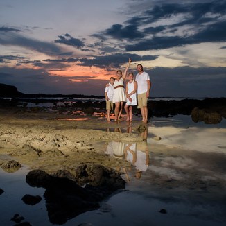 The Chalmers family joined me on the beach as a drizzle began, but some bright smiles and umbrellas as props did the trick to combat any rainy day blues. Soon, the droplets subsided and the setting sun mixed with the calm after the storm produced a pink, purple and blue colored sky, complete with glassy tide pools and a beach all to ourselves. Cheers to family portraits during green season and the magic of the rain!